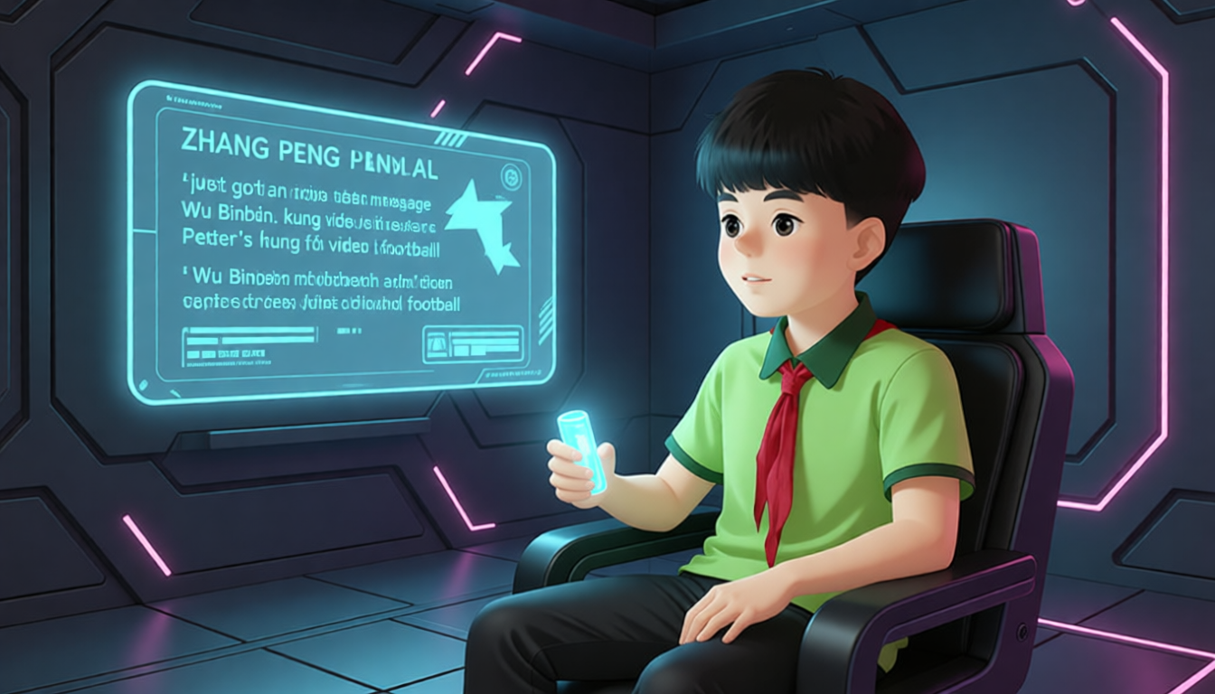 Peter replies, "Thank you for the video! Wu Binbin's kung fu is great. I also like watching football. Your hobby is very interesting too!" This gives Zhang Peng an idea.