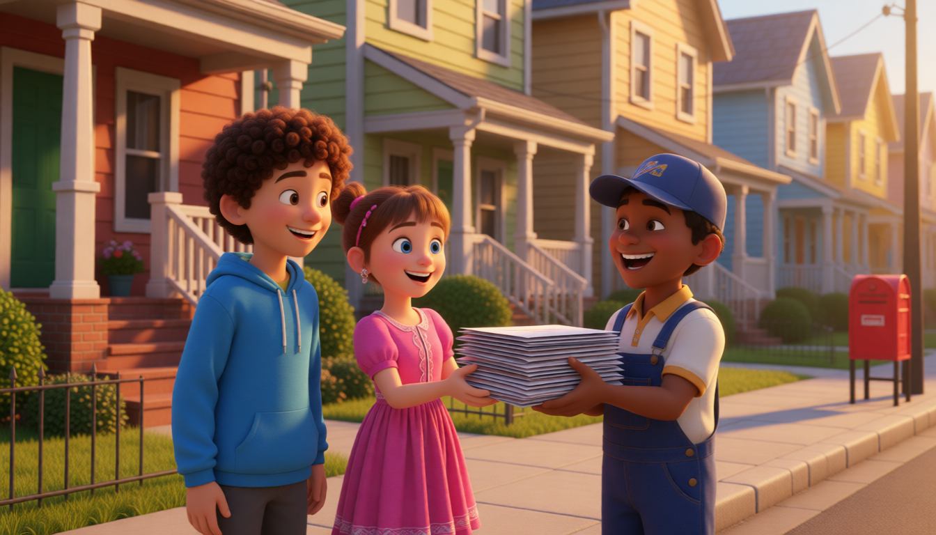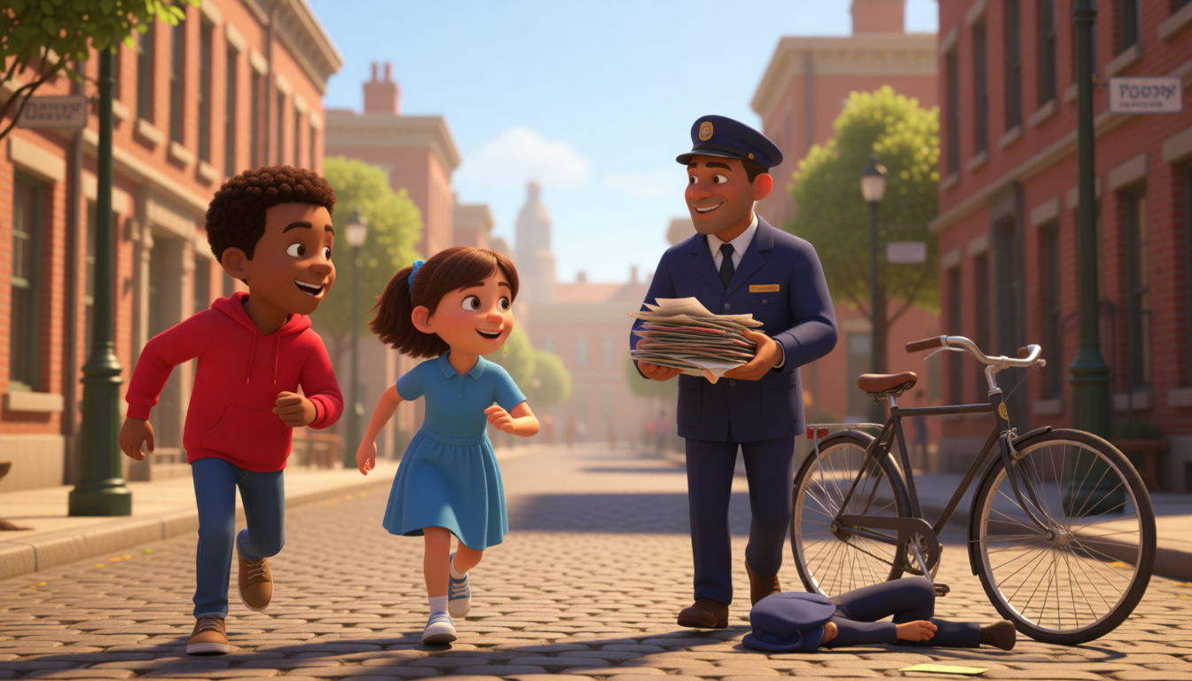 Sarah and John are happy to help the postman. They learn that every job can provide help. They have a very good day.
